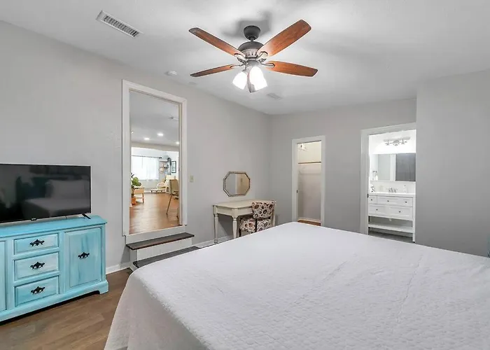 This villa is about 20 km of Clearwater Air Park airport and 25 minutes' walk from such cultural points of interest as Pinellas County Heritage Village. Guests can visit Belleview Biltmore Golf Club, which is at a distance of 3.6 km from the 2-bathroom villa, or check out Belleair Causeway Boat Ramp Dog Beach, which is about a 10-minute ride away. Dryer Avenue & Gladys Street bus stop is also just next door to this Largo accommodation.
